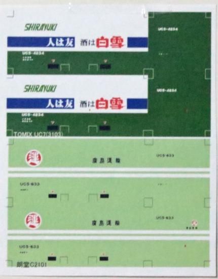 Nゲージサイズの20ftコンテナ(廣島運輸・白雪)を再現できるデカールです。大きさは朗堂C2101(廣島)TOMIX UC7(白雪)にあわせています。2個分収録してあり、番号はUC5−633、4234になります。写真ではコンテナの地色の薄い緑色、濃緑が印刷してありますが、デカールはクリヤーデカールでお届けします。尚写真のようなコンテナの地色を印刷したものもありますので、そちらを希望の場合はお申し付けください。