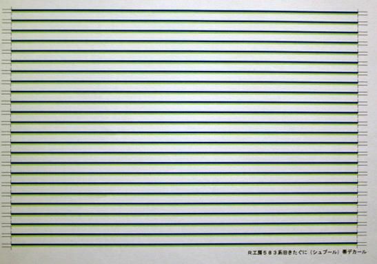 583系「シュプール」の帯のNゲージサイズのデカールです。24本収録してあります。