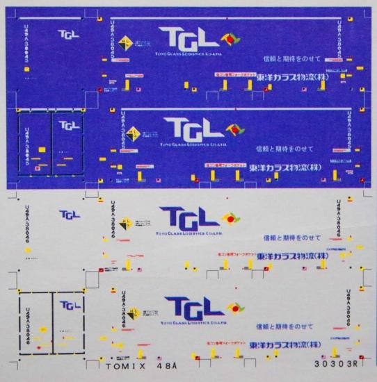 Nゲージサイズの31ftコンテナ「TGL」のU49Aを再現できるデカールです。大きさはTOMIX48Aにあわせています。2個分収録してあり、番号はU49A-38045,38046になります。写真ではコンテナの地色の青色が印刷してありますが、デカールはクリヤーデカールでお届けします。尚写真のようなコンテナの地色を印刷したものもありますので、そちらを希望の場合はお申し付けください。