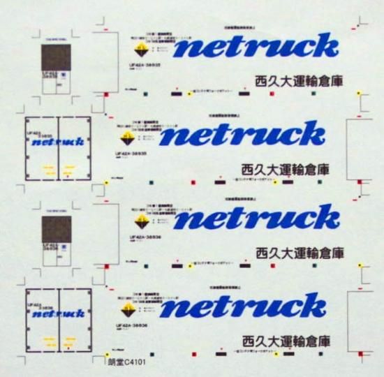 Nゲージサイズの31ftコンテナ(net ruck)を再現できるデカールです。大きさは、朗堂C4101にあわせています。2個分収録してあり、番号はUF42A-38035,36になります。デカールはクリヤーデカールでお届けします。