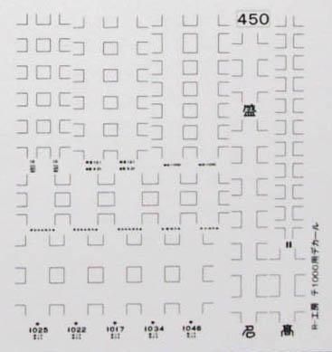 Nゲージサイズのテ1000の白文字が印刷してあるデカールです。番号の他に、形式、換算、所属、連結注意等、文字は全て収録してあります。5両分収録してあります。