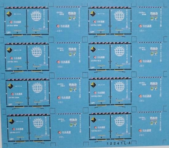 Nゲージサイズの12ftコンテナ(R&S)を再現できるデカールです。4個分収録してあり、番号はUV19A-577,584,612,698になります。尚同時に2枚以上購入の場合は番号違いで発送します。