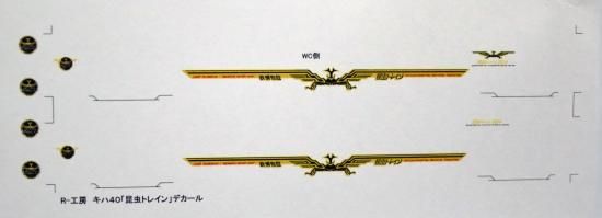 キハ40の「昆虫トレイン」を再現できるNゲージサイズのデカールです。側面と、前部分は乗務員扉の部分で繋ぎますので、目立ちません。クリヤーデカールでお届けします。