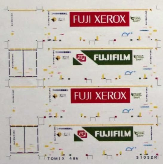 Nゲージサイズの31ftコンテナ(FUJI XEROX)を再現できるデカールです。大きさは、TOMIX 48Aにあわせています。2個分収録してあり、番号はU47A-38173,38174になります。デカールはクリヤーデカールでお届けします。