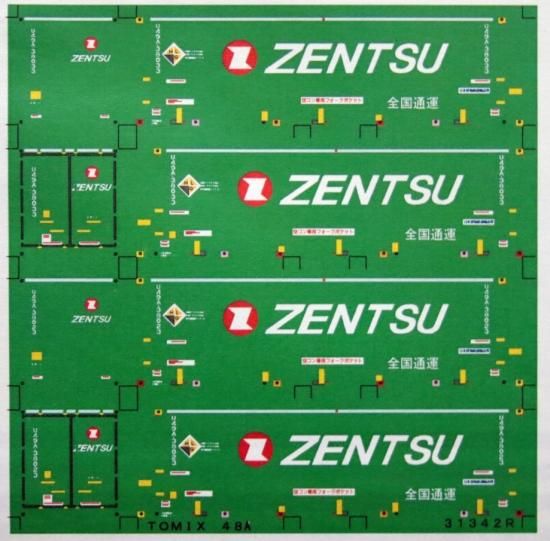 Nゲージサイズの31ftコンテナ(49A-ZENTSU)を再現できるデカールです。大きさはTOMIX-U48Aにあわせています。2個分収録してあり、番号はU49A-38033,38023になります。写真ではコンテナの地色の緑色が印刷してありますが、デカールはクリヤーデカールでお届けします。尚写真のようなコンテナの地色を印刷したものもありますので、そちらを希望の場合はお申し付けください。ホワイトの無塗装コンテナを使用の場合は塗装後にクリヤーデカールを貼るより、塗装の工程分が省かれますので、仕上がりが薄くでき綺麗に仕上がります。塗装できない環境の方にもオススメです。