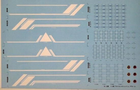 12系のサイエンストレインを再現できるNゲージサイズのデカールです。番号、所属、換算表記、牽引機関車EF65の番号、HM、方向幕もおまけでついています。
