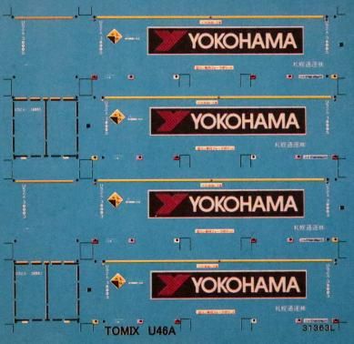 Nゲージサイズの31ftコンテナ(YOKOHAMA-U52A)を再現できるデカールです。大きさは朗堂CA-3101にあわせています。写真1ではTOMIXU46Aとありますが、朗堂から適合品出ましたので、朗堂CA-3101です。2個分収録してあり、番号はU52A-38003,38005になります。写真ではコンテナの地色の青色が印刷してありますが、デカールはクリヤーデカールでお届けします。地色付き希望の方は備考欄にてお申し付け下さい。写真2は完成見本です。