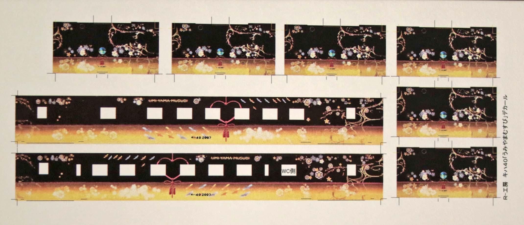 キハ40「うみやまむすび」を再現できる、Nゲージサイズのデカールです。ホワイトデカールに印刷してあります。貼り付け後おでこ部分は塗装して下さい。窓ガラスの部分も収録しています。こちらは透明デカールです。2枚目の写真は貼り付けの見本になります。