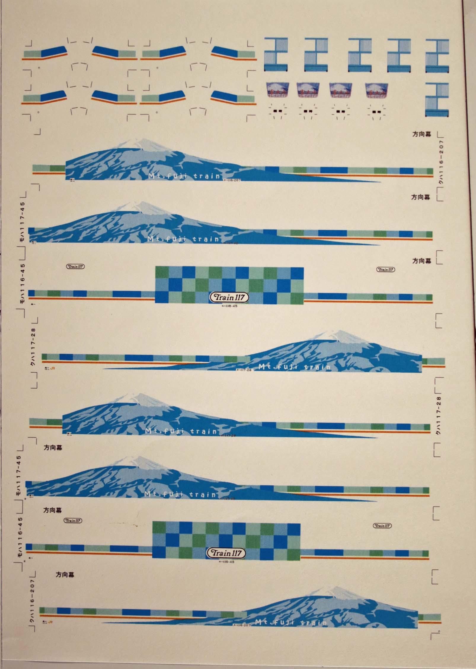 117系の「Mt Fuji Train」のラッピングを再現できる、Nゲージサイズのデカールです。クリヤーデカールに印刷してあります。乗務員扉部分で貼り分けて下さい。ウィンディースペース部分の柵も印刷していますので、透明プラ板に貼り付けて下さい。HM収録してあります。