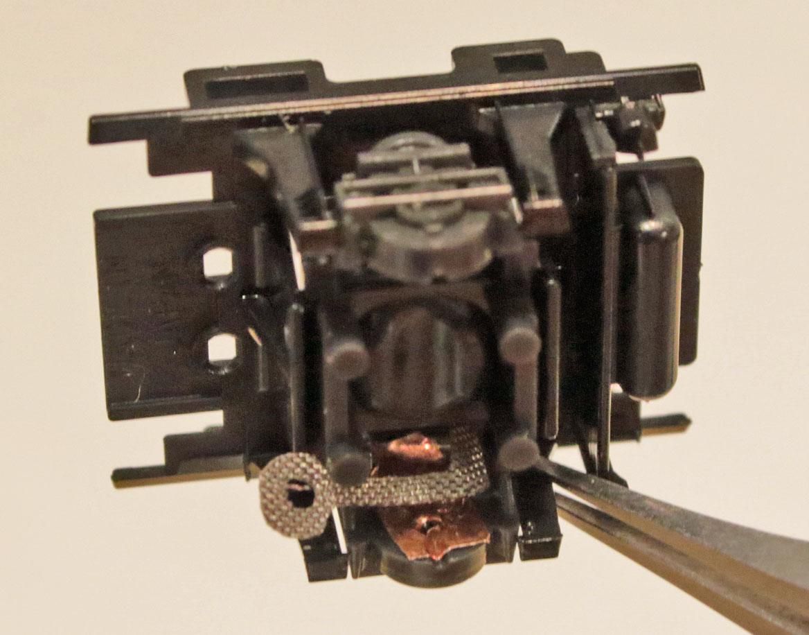 NゲージのD級機関車は動輪が4輪ありますが、そのうち1輪が登坂性能アップの為、ゴム車輪ですので、実質3輪での集電となります。これでは集電不良区間では、ギクシャクしますよね?最近の車両はフライホイールついていますので、そこそこのスピードではフライホイールのおかげで、集電不良区間も、通過できますが、スロースピードではその機能も発揮できません。そこで遊んでいる中間台車にも集電機能を付けて5輪中4輪で集電できるようにしたのが、この製品です。台車に穴開け不要。ハンダ付け不要。追加材購入不要。通電するシールを貼るだけの簡単加工で実現できます。通電シールは最小部分で幅1mmですが、引きちぎるような力を入れない限り、切れる事はありません。通常使用では問題ありません。耐久性は、1日2時間の運転を2週間続けましたが、問題ありませんでした。写真1はEF66の中間台車のみで集電しています。ライトが点灯しているのが、確認できます。写真2は通電シールを貼った台車のイメージです。写真3は車体に組み込んだ時のイメージです。中間台車に糸のような物がありますが、そこが最小部分の1mmの所です。写真では分かりやすいように手前に引き出していますが、奥にすれば目立ちません。この商品はKATOのED62(3084)に対応しています。