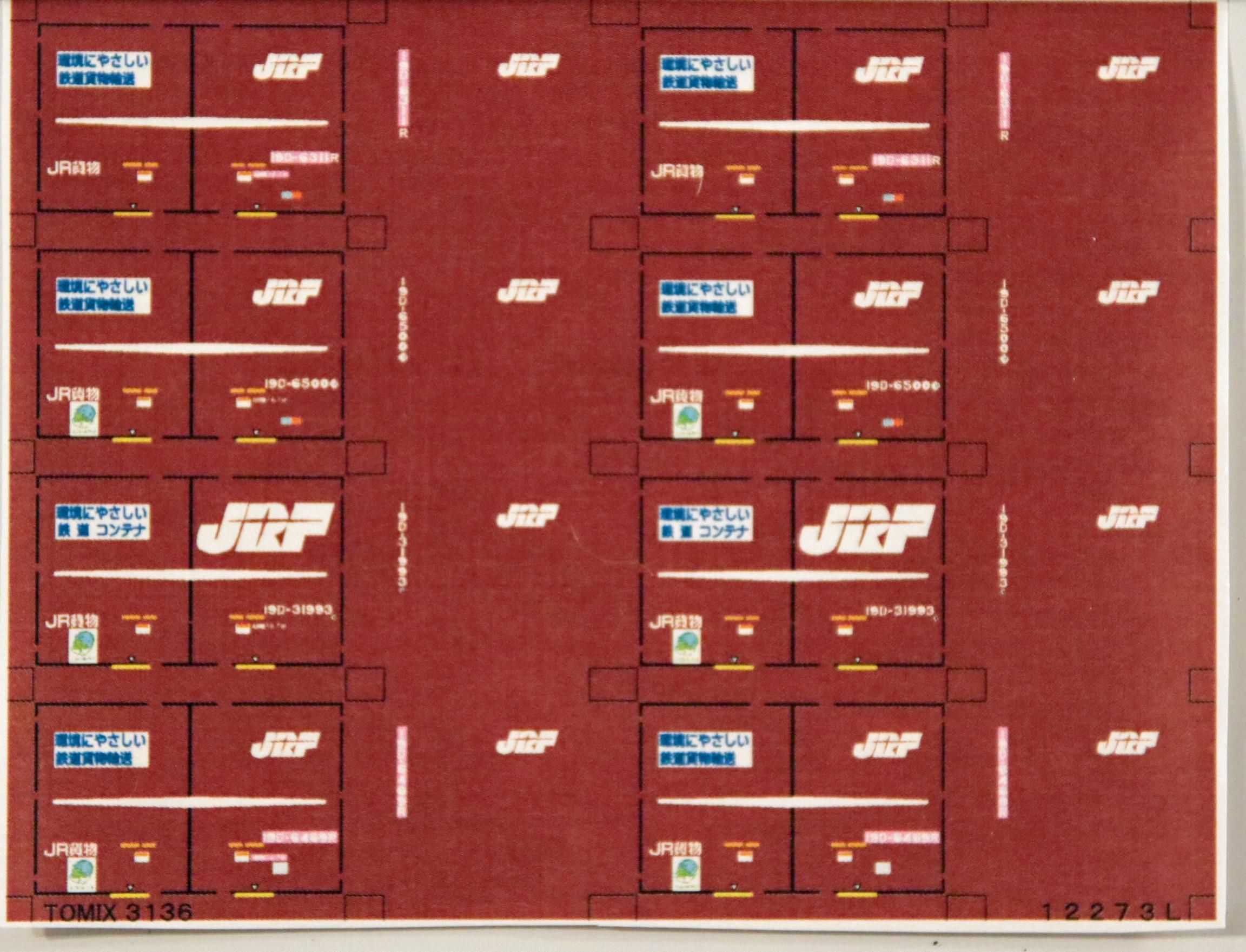 Nゲージサイズの12ftコンテナ(19D リニューアル)を再現できるデカールです。4個分収録してあり、番号は19D-6311R,6500り,31983り,6469Rになります。写真ではあずき色の地色が印刷してありますが、クリヤーデカールで発送いたします。写真のような地色付きを希望の方は備考欄でお申し付けください。