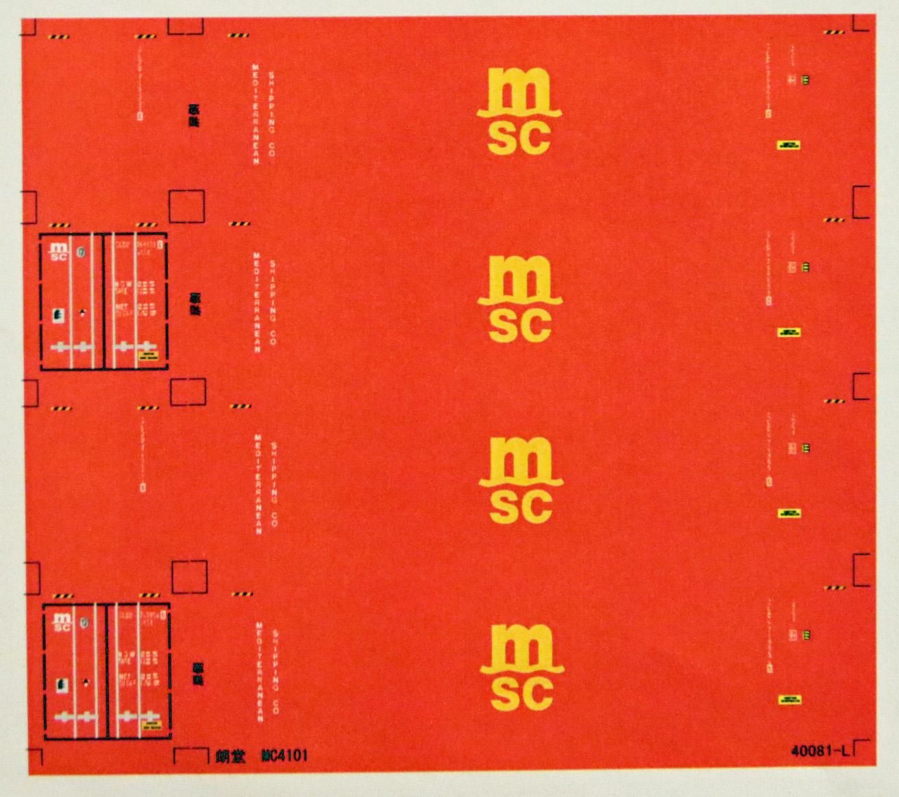 Nゲージサイズの40ftコンテナ黄色M−SCを再現できるデカールです。大きさは朗堂MC4101に合わせています。写真では地色付きですが、地色無しのクリヤーデカールでお届けします。地色付き希望の方は、備考欄にてお申し付け下さい。