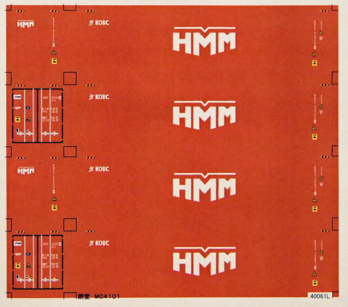 Nゲージサイズの40ftコンテナHMMを再現できるデカールです。大きさは朗堂MC4101に合わせています。写真では地色付きですが、地色無しのクリヤーデカールでお届けします。地色付き希望の方は、備考欄にてお申し付け下さい。