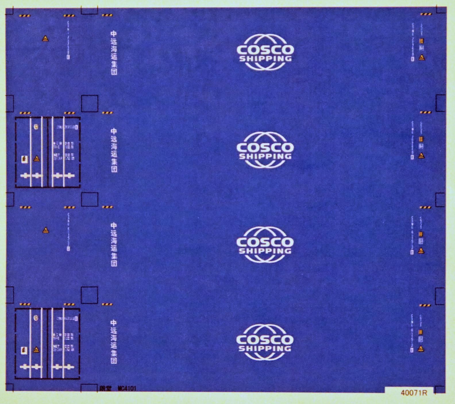 Nゲージサイズの40ftコンテナCOSCO新を再現できるデカールです。大きさは朗堂MC4101に合わせています。写真では地色付きですが、地色無しのクリヤーデカールでお届けします。地色付き希望の方は、備考欄にてお申し付け下さい。