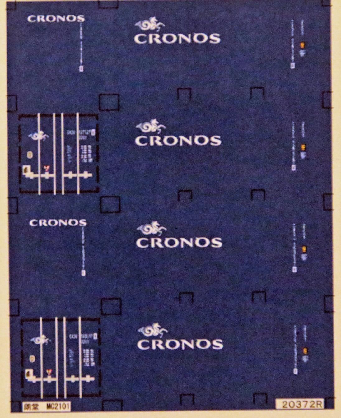 Nゲージサイズの20ftコンテナ(CRONOS)(下)22Gを再現できるデカールです。大きさは朗堂MC2101に合わせてあります。写真ではコンテナの地色が印刷してありますが、デカールはクリヤーデカールでお届けします。尚写真のようなコンテナの地色を印刷したものもありますので、そちらを希望の場合はお申し付けください。尚この商品は、地色付きはインクジェットに変更しましたので、切り出し後にクリヤーでのコーティングが必要になります。