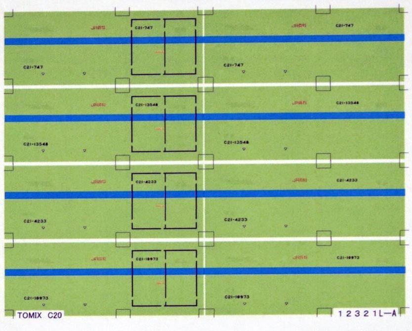 Nゲージサイズの12ft国鉄型コンテナを、JR貨物に改造後の姿(C21 JR貨物)を再現できるデカールです。大きさはTOMIXC20にあわせています。4個分収録してあり、番号はC21-10973,4233,13548,747かC21-166,4631,5793,6397のいずれかになります。2種類ありますので、同時注文で複数注文時は、番号違いで発送いたします。写真ではコンテナの地色の黄緑色が印刷してありますが、デカールはクリヤーデカールでお届けします。尚写真のようなコンテナの地色を印刷したものもありますので、そちらを希望の場合はお申し付けください。2枚目の写真は貼り付けの見本になります。