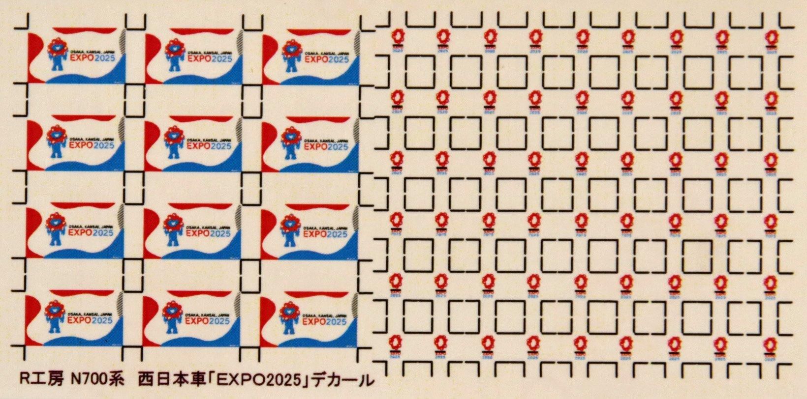 N700系JR西日本車の「Expo2025」を再現できるNゲージサイズのデカールです。クリヤーデカールでお届けします。