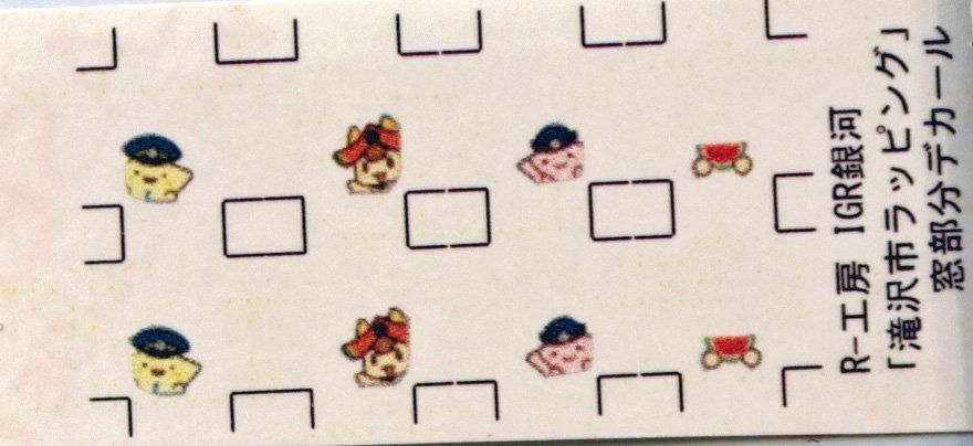IGR銀河鉄道7000系「滝沢市」ラッピングを再現できる、Nゲージサイズのデカールです。1編成2両分収録しています。ホワイトデカールでお届けします。写真2の窓ガラス部分も収録しています。