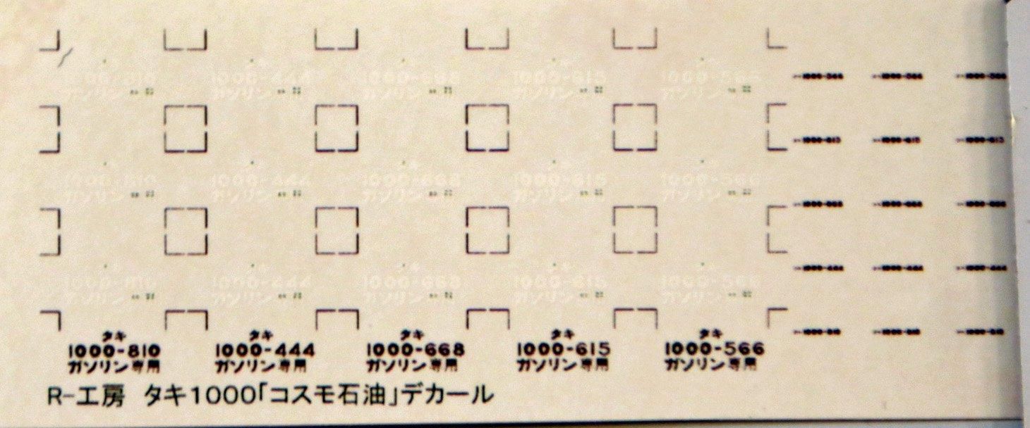 Nゲージサイズのタキ1000のコスモ石油を再現できるデカールです。コスモ石油部分はホワイトデカールで、番号部分はクリヤーデカールでお届けします。5両分制作できます。