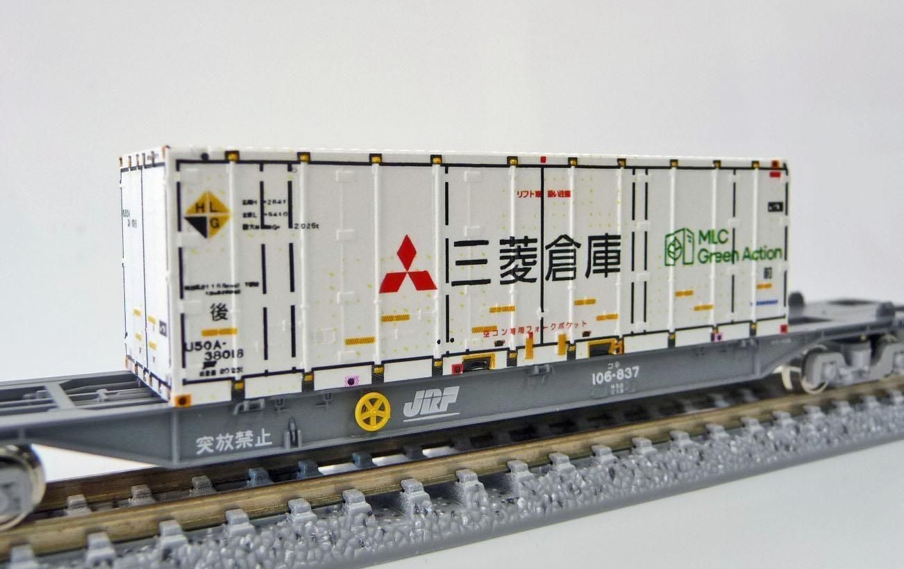 Nゲージサイズの31ftコンテナ「三菱倉庫」を再現できるデカールです。大きさは朗堂CB-3101にあわせています。2個分収録してあり、番号はU50A-38018,38019になります。デカールはクリヤーデカールでお届けします。写真2枚目は制作見本になります。