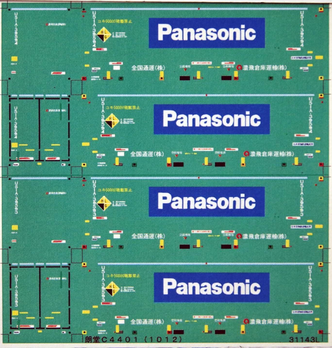 Nゲージサイズの31ftコンテナ(仙台運送)を再現できるデカールです。大きさは朗堂C4401にあわせています。2個分収録してあり、番号はU51A-39593、39594になります。写真ではコンテナの地色の緑色が印刷してありますが、デカールはクリヤーデカールでお届けします。尚写真のようなコンテナの地色を印刷したものもありますので、そちらを希望の場合はお申し付けください。