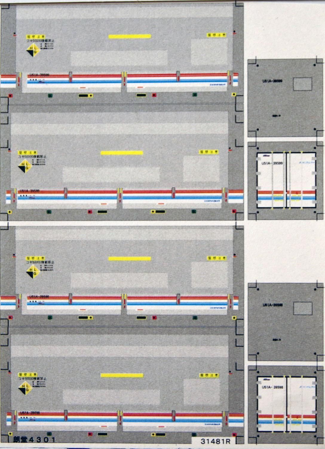 Nゲージサイズの31ftコンテナ「U51A 元TONAMI」を再現できるデカールです。大きさは朗堂C4301 にあわせています。2個分収録してあり、番号はU51A-39598,39599になります。写真ではコンテナの地色の灰色が印刷してありますが、デカールはクリヤーデカールでお届けします。尚写真のようなコンテナの地色を印刷したものもありますので、そちらを希望の場合はお申し付けください。
