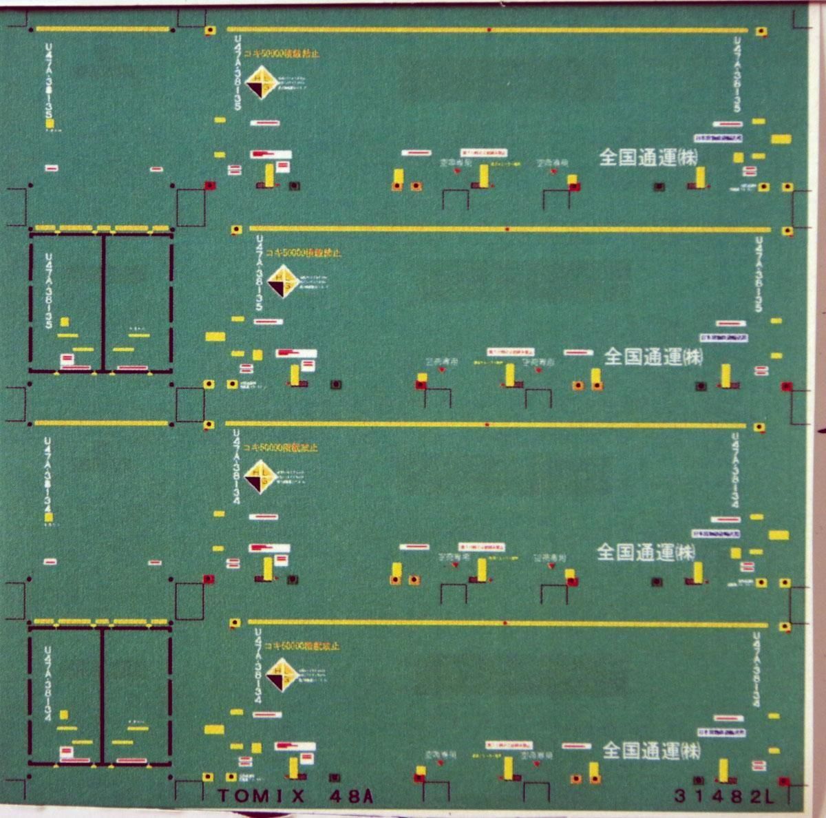 Nゲージサイズの31ftコンテナ「U47A 元仙台運送」を再現できるデカールです。大きさはTOMIX48A にあわせています。2個分収録してあり、番号はU47A-38134,38135になります。写真ではコンテナの地色の緑色が印刷してありますが、デカールはクリヤーデカールでお届けします。尚写真のようなコンテナの地色を印刷したものもありますので、そちらを希望の場合はお申し付けください。