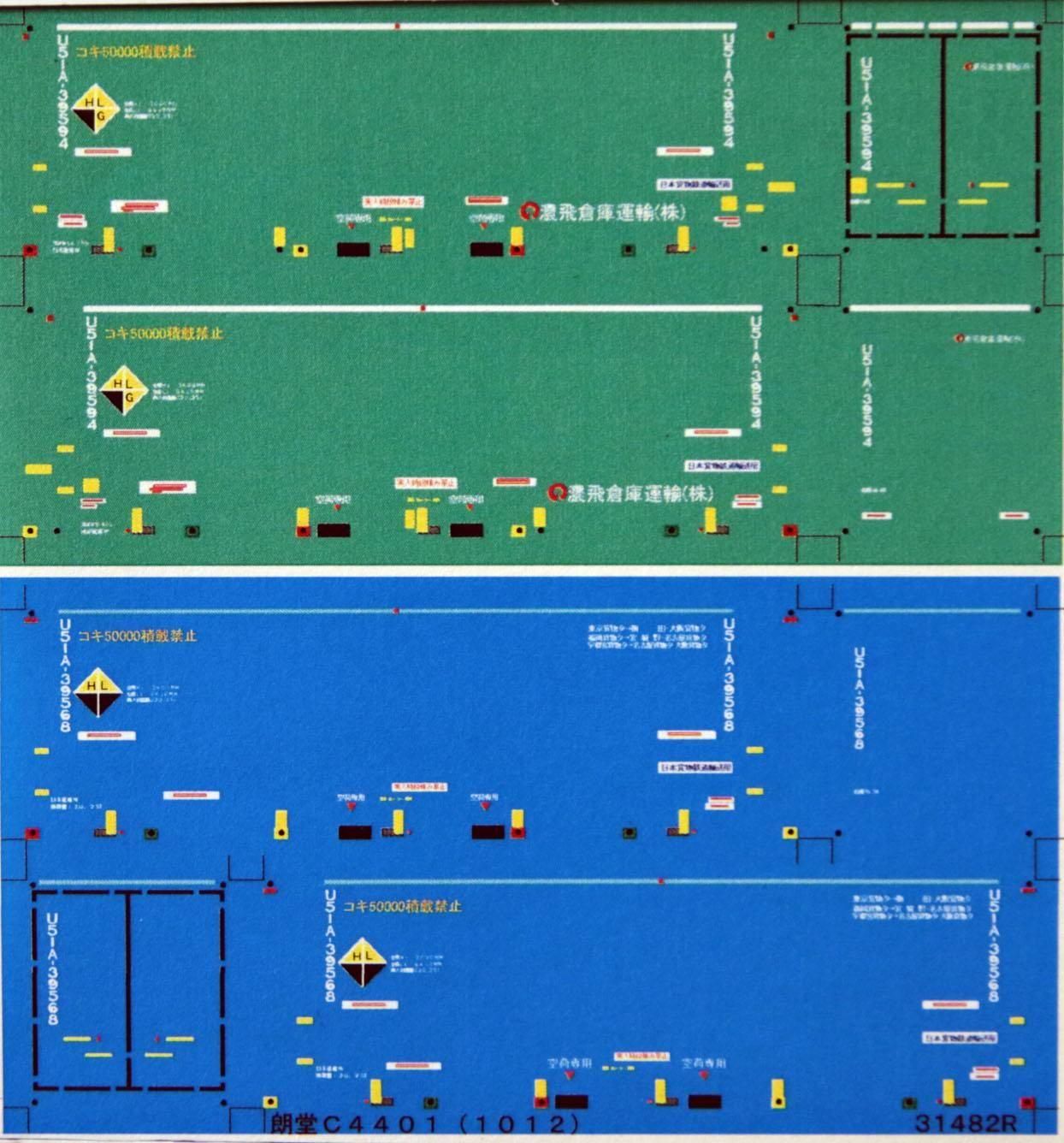 Nゲージサイズの31ftコンテナ「U51A 元Panasonic」「EcoLiner」を再現できるデカールです。大きさはT朗堂C4401にあわせています。2個分収録してあり、番号はU51A-39594,39568になります。写真ではコンテナの地色の緑、水色が印刷してありますが、デカールはクリヤーデカールでお届けします。尚写真のようなコンテナの地色を印刷したものもありますので、そちらを希望の場合はお申し付けください。