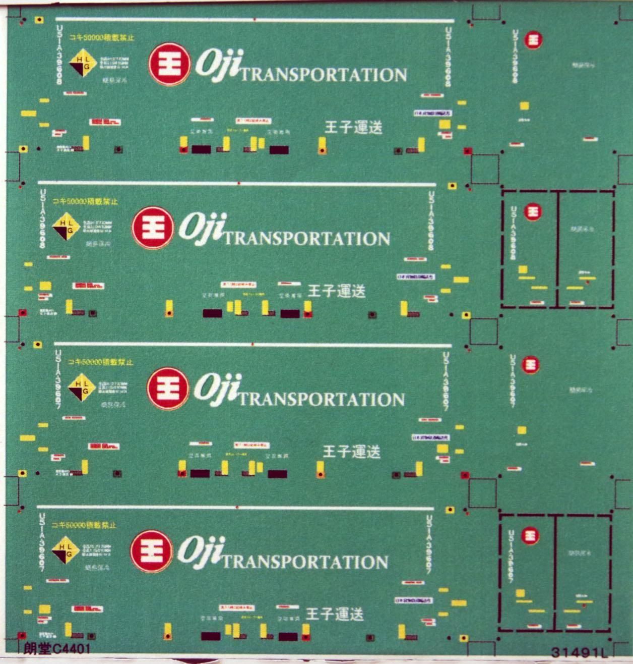 Nゲージサイズの31ftコンテナ「U51A王子運送」を再現できるデカールです。大きさは朗堂C4401にあわせています。2個分収録してあり、番号はU51A-39607,39608になります。写真ではコンテナの地色の緑色が印刷してありますが、デカールはクリヤーデカールでお届けします。尚写真のようなコンテナの地色を印刷したものもありますので、そちらを希望の場合はお申し付けください。
