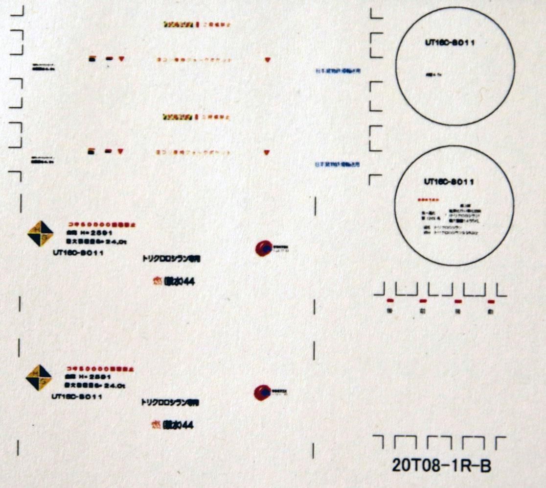 Nゲージサイズの20ftタンクコンテナUT16C「トリクロロシラン」を再現できるデカールです。1個分収録してあり、番号違いで2種類あり、同時注文で番号違いで発送いたします。デカールはクリヤーデカールでお届けします。