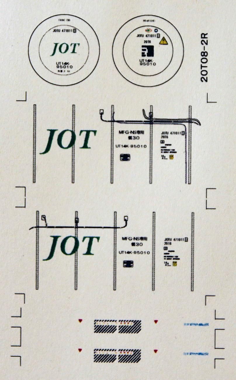 Nゲージサイズの20ftタンクコンテナUT14K「MFG-NS」を再現できるデカールです。1個分収録してあります。デカールはクリヤーデカールでお届けします。